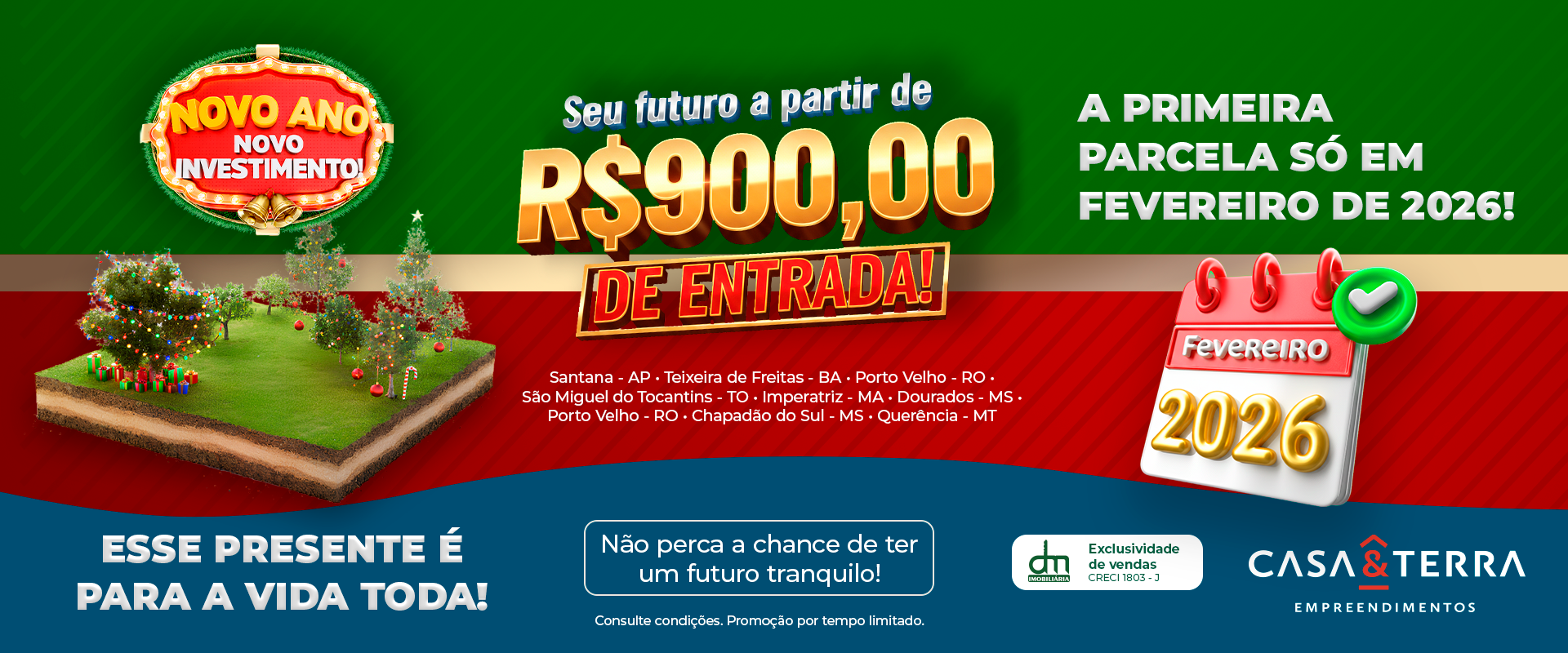 Investir em terra é a opção mais inteligente para diversificar o patrimônio, gerar renda e obter valorização constante. A Casa&Terra é a ponte facilitadora, residenciais legalizados, financiamento próprio, atendimento de primeira e parcelas que cabem no orçamento!